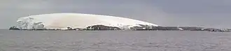 Hugo Island (or Víctor Hugo) is an isolated ice-covered island 2 kilometres (1 nmi) long, with several rocky islets and pinnacles off its east side, located off the west side of the Antarctic Peninsula, about 74 kilometres (40 nmi) southwest of Cape Monaco, Anvers Island. It was probably discovered by C.J. Evensen, captain of the Peninsula in 1893, because an unnamed island of similar extent and location first appeared on the charts at that time. The island was charted by the French Antarctic Expedition, 1903–05, under Dr. J.B. Charcot, who named it for the French poet and novelist Victor Hugo, grandfather of Charcot's first wife, whose maiden name was Jeanne Hugo.[1]