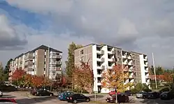 Huhtasuo has many services, such as a library, a health center, a church, a school, a convenience store and a grocery store. Most of the houses in Huhtasuo are apartment buildings that were built in the 1970s and 1980s.[6][7] There are also row houses and single-family houses in the area.[8]