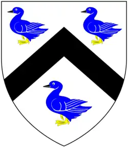 - ^ Per research conducted by Sheila Yeo of the Yeo Society,[17] based on stained glass depictions of Yeo arms in churches of Petrockstowe (Yeo of Heanton Satchville) and Hatherleigh (Yeo of Hatherleigh) both in Devon. The ducks are described as of various breeds by different sources. Heraldic sources give contradictory tinctures: Argent, a chevron between three shovelers sable (Vivian),[18] and Argent, a chevron between three mallards azure (Pole).[19]