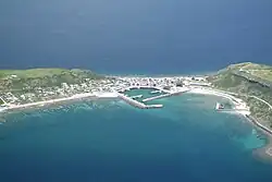 The population of Hujing (Huching) village, noted for its seafood restaurants, is concentrated on the southwest end of the island.[5]