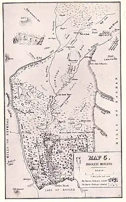 In the 19th century, the valley, mainly marshy ground and a shallow lake, was inhabited by Ghawaraneh Bedouin[8] who wove matting from the papyrus with which they built their homes. John MacGregor, a Victorian adventurer, was captured with his boat, the "Rob Roy", by dark-skinned Bedouin living in the Hula marshes. He was responsible for the first modern maps of the area.[9] Mortality rates were very high due to the spread of malaria. In 1882, a traveler wrote that the region was "among the finest hunting grounds in Syria," home to "panthers, leopards, bears, wild boars, wolves, foxes, jackals, hyenas, gazelles and otters." During World War II, officers of the British Army wrote about hunting birds there.