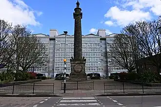 ![]() Hull College's tower block and the Wilberforce Monument overlooking Queen's Gardens, April 2023 | |