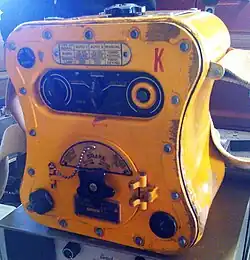 The World War II-era Gibson girl survival radio used a hand-cranked generator to provide power; this avoided the unreliable performance of dry-cell batteries that might be stored for months before they were needed, although it had the drawback that the survivor had to be fit enough to turn the crank. Survival radios were invented and deployed by both sides during the war.[9] The SCR-578 (and the similar post-war AN/CRT-3) survival radio transmitters carried by aircraft on over-water operations were given the nickname "Gibson Girl" because of their "hourglass" shape, which allowed them to be held stationary between the legs while the generator handle was turned.