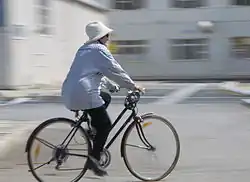 During a bicycle race, an elite cyclist can produce around 440 watts of mechanical power over an hour and track cyclists in short bursts over 2500 watts; modern racing bicycles have greater than 95% mechanical efficiency. An adult of good fitness is more likely to average between 50 and 150 watts for an hour of vigorous exercise. Over an 8-hour work shift, an average, healthy, well-fed and motivated manual laborer may sustain an output of around 75 watts of power.[2] However, the potential yield of human electric power is decreased by the inefficiency of any generator device, since all real generators incur losses during the energy conversion process.[3][4]