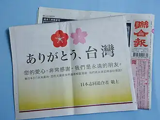 - ^ "Taiwan businessman donates US$12.35m to Japan". March 23, 2011.
