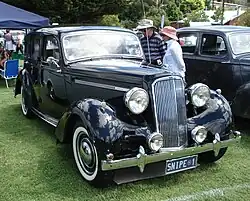 The Mark I was essentially a 6-cylinder version of the 1945 Humber Hawk, itself a facelifted pre-war car. A version of the 1930s Snipe remained available, with the 1936-introduced 2731 cc engine. However, the standard Super Snipe engine was the 4086cc side-valve engine that had appeared in the Humber Pullman nearly a decade earlier, in 1936, and which would continue to power post-war Super Snipes until 1952.[6] Throughout the years 1936–1952 the maximum power output of the engine was always given by the manufacturer as 100 bhp at 3400 rpm.[6]