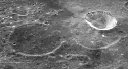 Apollo 15 mapping camera image, with Hume below center, Hume A above center, and Hume Z above left of center