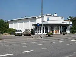 The shopping mall Humlebæk Center opened just west of the station in 1977. There are also shops on Strandvejen a little east of the station. The multinational health care company Coloplast has its headquarters in west Humlebæk. Many small companies are located in the nearby industrial quarter on Bakkegårdsvej.