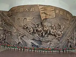 The Hundred Regiments Offensive is a pivotal moment in the Second Sino-Japanese War, demonstrating the considerable power of the anti-Japanese national united front promoted by the Chinese Communist Party. A memorial was erected in 1987 at the peak of Shinao Mountain in Yangquan, Shanxi Province, to commemorate this significant offensive.[74][75]