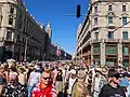 The 30th Budapest Pride was held on 28 June by the Szivárvány Misszió Alapítvány (lit. 'Rainbow Mission Foundation') and Budapest's local government as a municipal event, reviving an earlier tradition of a freedom celebration in June each year to commemorate the withdrawal of Soviet troops.[127][128] Karácsony argued that as a municipal event, it was not covered by the law on assembly, therefore the police could not prohibit it,[129][130] but the police stated they would process this as any other assembly,[131][132] and they prohibited it.[133][134] The official justification included photos and videos of men kissing and drag queens, including a video which was not taken at a Pride parade.[135] The organizers did not appeal the decision.[136]