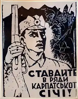 Dmytro Klympush, a former officer of the Austro-Hungarian army, was appointed as commander-in-chief of the Sich, and Ivan Roman, a former officer of the Czechoslovak army, was appointed as deputy commander. In December, the autonomous government of Voloshin and the Czechoslovak General Staff reached an agreement on conducting military training of the Sich, and they received the weapons of the local national guard, the Domobranstva. At that time, there were about 2,000 trained Sich soldiers, or so-called full members of the Carpathian Sich. In general, Sich had about 2-3 thousand soldiers and about the same number of reservists.[13]