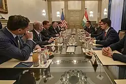 US Secretary of State Mike Pompeo meets with Hungarian Foreign Minister Péter Szijjártó in Budapest in February 2019