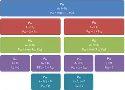 Let Pij be the length of the longest common subsequence for the first i elements of A and the first j elements B.