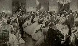 Today, most hunt balls consist of a cocktail hour, followed by dinner and dancing. They are typically "black tie" events.[1] Attendees are invited to wear scarlet tail coats produced specifically for hunt ball attendees. Although the dancing was once limited to traditional forms, these days styles vary widely between hunts. At some balls, the dancing is preceded by an auction in which items donated by members are sold to raise money for the care and feeding of the hounds.[2] Ticket sales for the ball are also an important aspect of fundraising.