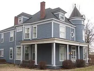 It is a three-story, three-bay, clapboard house with a wraparound porch and a three-story, round tower. The tower is topped by a conical turret with two half-circle eyebrow windows.[2]