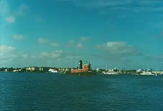 Huntington was a historic tugboat, built in 1933 by the Newport News Shipbuilding and Dry Dock Company, Newport News, Virginia. She had a steel plate hull and a two-story superstructure that contained the main saloon, two cabins, heads and a galley on the lower level and wheelhouse and captains quarters on the upper level. The original coal fired steam engine was replaced by a diesel engine in 1950. The ship is named for shipyard founder Collis Potter Huntington (1821-1900). Huntington was retired from service at Newport News Shipbuilding and Dry Dock Company in 1992, then retired finally in 1994.[3] The ship later served as floating museum, before being scrapped in 2010.[4]
