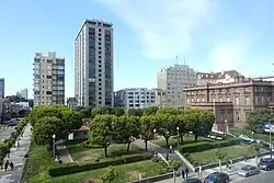 The city-block-size park contains landscaped areas, a playground, and two fountains.[2][3]