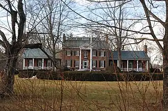 Huntland, originally known as New Lisbon, is a historic estate located at Middleburg, Loudoun County, Virginia. The original section was built in 1834, and is a two-story, five-bay, Federal style brick dwelling. It built by master brickmason William Benton Sr., who also constructed nearby Oak Hill, the home of President James Monroe. In 1915, the house was remodeled and enlarged with side one-story brick additions and Colonial Revival-style detailing. The estate was also enhanced with gates, walls, and terraced gardens that are reminiscent of English manor estates and state-of-the-art kennels and horse stables. Also on the property are the contributing spring house, smokehouse, and a guest cottage, all constructed around 1834, and early-20th-century structures that include secondary dwellings, a dairy barn with attached silos and a corncrib, a milking parlor, five sheds, a garage, a pump house, and a cistern.[3]