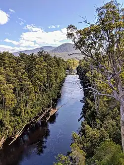 The surrounding forests are also home to other valuable species such as eucalyptus, and the river supports populations of native fish, including the rare Australian grayling. The river's ecosystem, however, faces challenges from pollution linked to industries such as salmon farming. In recent years, waste from salmon hatcheries has raised concerns over water quality and its impact on the river’s health and surrounding habitats.[9]