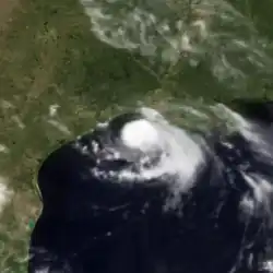 ![]() Bonnie at peak intensity off the coast of Texas on June 26 | |