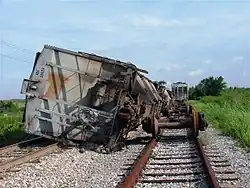 Charley was initially expected to hit further north in Tampa and caught many Floridians off-guard due to the storm turning toward the Florida peninsula sooner than anticipated, within six hours before landfall.[5] Along its path, Charley caused 10 deaths and $16.9 billion in damage to insured residential property, making it the second costliest hurricane in United States history at the time.[6] Charley was a compact, fast-moving storm, which limited the scope and severity of the damage.
