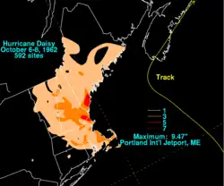 - ^ a b c d Edward Cable (1962-11-23). Hurricane Daisy – Effects on New England, October 5–7, 1962 (Report). National Hurricane Center. p. 1. Retrieved 2013-03-05.