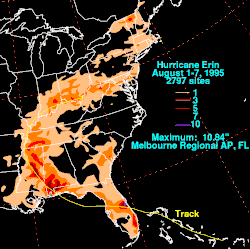 - ^ Hagemeyer, Bart (August 7, 1995). Preliminary Report...Hurricane Erin (Report). National Weather Service Melbourne, Florida. p. 1. Retrieved January 6, 2020.