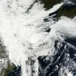A cold front stalled a couple hundred miles southeast of Bermuda on October 10. During that day, a strong upper-level trough moved southeastward off the southeast coast of the United States. Due to several factors, including upward motion and strong diffluence—the rate at which a fluid moves—the area became baroclinically unstable. This caused the interaction between the trough and the front to develop into an extratropical low about 345 miles (555 km) southeast of Bermuda on October 11. The low moved quickly northward, then northwestward, strengthening quickly due to the instability of the atmosphere. Late on October 11, the system slowed, and the upper-level circulation became aligned with the low-level circulation. The extratropical storm began to develop tropical characteristics late on October 11, including surface temperatures warmer than the surrounding environment, and vertical wind characteristics of a tropical cyclone. Based on its organization, the system developed into Subtropical Storm One early on October 12 while located about 35 miles (56 km) south of Bermuda.[1]