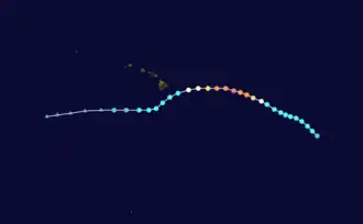 ![]() Hurricane Madeline at peak intensity east of Hawaii on August 29 | |