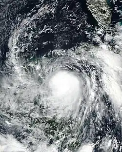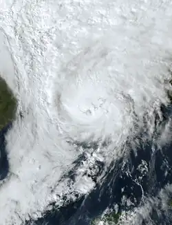![]() Hurricane Zeta at peak intensity while making landfall in southeast Louisiana on October 28 | |