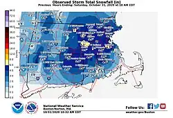 - ^ "Who got the most snow in Massachusetts?". masslive. October 30, 2020. Retrieved November 1, 2020.