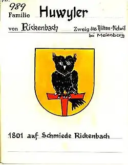Huwyler is a surname originating from Upper Swabia in the Middle Ages, connecting the region between the current Bavaria and Swiss-German cantons. This surname is still recognized as linked to the Swiss central region (Zurich, Zug and Lucerne) with roots in the cities of Risch and Steinhausen.[1]