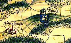 Huwyler is a topographic surname from the Huwyl castle and hamlet located between Römerswil and Hochdorf, Lucerne around the 15th century. The Huwyl area was named as Hunwil in documents dating from 1230 to 1474.[2] The surname started from the Lords von Hunwil (Herren von Hunwil, Giswil OW). The von Hunwil surname is well documented as they were ministerialis barons.[3] In the 15th and 16th centuries, Swiss surnames were derived by appending the syllable –er. This largely replaced the practice of using the "von" prefix. Surname von Hunwil evolved over the years to Huwiler and Huwyler (and even Hauviller in France).