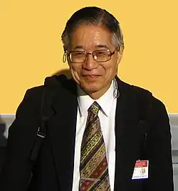 Huzihiro Araki was an invited speaker at the International Congress of Mathematicians in 1970 in Nice and in 1978 in Helsinki.[9] He was the second president of the International Association of Mathematical Physics, during the period 1979–1981.[10] In 2003 he received, together with Oded Schramm and Elliott Lieb, the Henri Poincaré Prize.[11] In 1990 he was the chief organizer of the International Congress of Mathematicians in Kyoto. He was editor of the scientific journal Communications in Mathematical Physics[12] and founder of Reviews in Mathematical Physics.[13] In 2012 he became a fellow of the American Mathematical Society.[14]