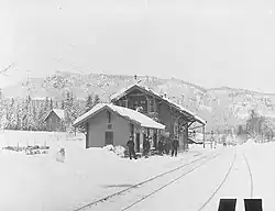 Hvalstad was along with Asker Station the only stations to be opened along with the Drammen Line on 8 October 1872.[1] The first station building was a simple wooden structure designed by Georg Andreas Bull. It was a stable design, which was seen on several low-traffic stations along the Randsfjorden Line, the Drammen Line and the Jæren Line.[2] Near the station there was a wooden viaduct, the 176-meter (577 ft) Hvalstad Viaduct. It was the largest of its kind in Northern Europe and became a tourist attraction.[3] The station became the natural center for the area and soon both residences and shops.[4]
