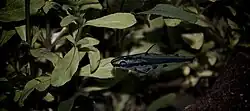 These catfish are mid-water swimmers.[2] They are also schooling fish.[3] In their natural habitat, they are almost always found closely associated with submerged vegetation.[3]