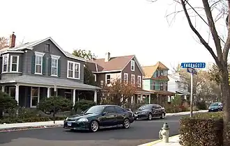 The Hyattsville Historic District is a residential neighborhood comprising a national historic district located in the city of Hyattsville, Prince George's County, Maryland. The district comprises approximately 600 structures, primarily houses, that exhibit late-19th and early-20th century design characteristics. The majority of residential buildings are of frame construction, the older ones with foundations of brick or (rarely) fieldstone, the newer of concrete. The architectural styles represented: grand "mansions," summer cottages, duplexes, Second Empire, Queen Anne, Italianate, Victorian, Bungalow, and Spanish. The area also includes numerous vernacular buildings. The finest concentration of late-19th century structures occur in the area of Farragut, Gallatin, and Hamilton streets and 42nd Avenue. The early-20th century hipped-roof style and bungalows are found throughout the district.[2]