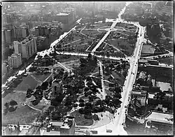 A 1930 photograph shows mostly only small trees in the park with the Hills fig avenue newly planted. Bandstands were scattered throughout the city and were popular for lunchtime concerts, particularly in the depression when unemployed people abounded. One was located near the corner of Park and College Streets (north) – which was demolished to create (in 1951) the Sandringham Gardens and memorial gates to Kings George V and VI.[42][1]