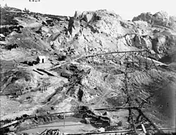 Hydraulic fill is also a term used in hard rock mining and describes the placement of finely ground mining wastes into underground stopes in a slurry by boreholes and pipes to stabilize the voids.