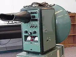 The original tellurometer, known as the Micro-Distancer MRA 1, was introduced in 1957.[1] It was invented by Trevor Wadley of the Telecommunications Research Laboratory of the South African Council for Scientific and Industrial Research (CSIR). He was also responsible for the Wadley Loop receiver, which allowed precision tuning over wide bands, a task that had previously required switching out multiple crystal oscillators.[2]