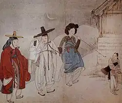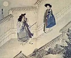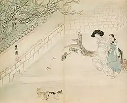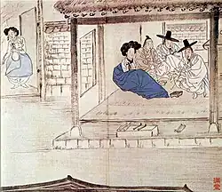 Hyewon pungsokdo is an album of the genre paintings (pungsokhwa or pungsokdo) drawn by the Korean painter Shin Yunbok during the late Joseon dynasty. It was named after Shin's art name, Hyewon, and comprises 30 paintings in total.