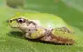 Although it is studied less frequently than female choice, sexual selection influenced by male-male intrasexual competition does exist in certain species of Hyla. Males of H. versicolor produce conspicuous advertisement calls in large groups at territories known to females.[12] This behavior, known as lekking, is common in many species of Hyla. In order to broadcast a clear acoustic communication to a female, males require distinct calling spaces within their respective leks.[12] When males infringe upon the calling space of one another, aggressive interactions may occur. Males of H. versicolor may choose to lower costs of aggressive encounters by first assessing one another's resource holding potential.[13] In simple terms, the resource holding potential (RHP) of an individual is its ability to win a fight. RHP can be based on a number of factors, including mass, size, weaponry, etc. In H. versicolor, the question of what determines an individual's RHP still stands. Aggressive interactions of this species are hard to observe within natural environments, because they occur briefly and infrequently.[12] Research has suggested that RHP in this species is not based on body size, however these findings were not based on in situ observations, but instead on the findings of a manipulated experiment.[13]