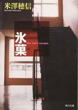 Hyouka[2] (Japanese: 氷菓, Hepburn: Hyōka; lit. "Ice cream") is a 2001 Japanese mystery novel written by Honobu Yonezawa. It is the first volume of the Classic Literature Club (古典部, Koten-bu) series. Five additional volumes have been published between 2002 and 2016. A manga adaptation drawn by Taskohna began serialization in the March 2012 issue of Kadokawa Shoten's Shōnen Ace. A 22-episode anime adaptation produced by Kyoto Animation and directed by Yasuhiro Takemoto aired from April 22 to September 16, 2012. A live-action film, Hyouka: Forbidden Secrets, directed by Mari Asato and starring Kento Yamazaki and Alice Hirose was released on November 3, 2017.[3][4]