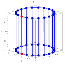In case the hyperboloid is a surface of revolution and can be generated by rotating one of the two lines or , which are skew to the rotation axis (see picture). This property is called Wren's theorem.[1] The more common generation of a one-sheet hyperboloid of revolution is rotating a hyperbola around its semi-minor axis (see picture; rotating the hyperbola around its other axis gives a two-sheet hyperbola of revolution).