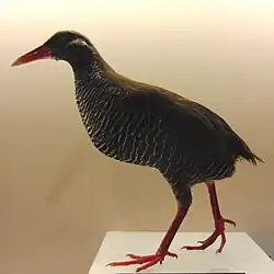 The Okinawa rail (Hypotaenidia okinawae) is a species of bird in the rail family, Rallidae. It is endemic to Okinawa Island in Japan where it is known as the Yanbaru kuina (ヤンバルクイナ(山原水鶏), "Yanbaru rail"). Its existence was only confirmed in 1978 and it was formally described in 1981 although unidentified rails had been recorded on the island since at least 1973 and local stories of a bird known as the agachi kumira may refer to this species.[2]