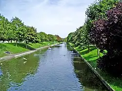 The Royal Military Canal runs across the northern edge of the marsh, to Winchelsea. Running under Stade Street, the canal, intended to repel invasion during the Napoleonic wars of 1804 to 1815, gives central Hythe its character. Now shaded by trees, the canal, 10 yards wide, passes into the marsh from the middle of the town. The canal begins at Seabrook and runs through Hythe. It follows the original haven that was once Hythe's harbour as far as the light railway thence across Romney Marsh to Winchelsea. Its 26-mile length can be walked.