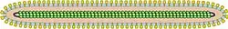The viruses in this family are non occluded, enveloped, rod-shaped virions measuring 500–1,000 nanometers (nm) in length and 50–80 nm in diameter.[4] The virions contain a thin, dense central nucleocapsid that encases the DNA-protein core. The nucleocapsid core is surrounded by an amorphous proteinaceous tegument layer.[5] The outer surface of the virions is studded with helical polymeric structure composed of virally-encoded and host-derived protein dimers. The virions contain at least 35 polypeptides which range in size from 10 to 200 kilodaltons.