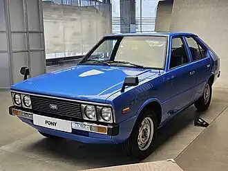 The Pony was presented as a coupé concept car[14] at the Turin Motor Show in October 1974,[15][16] and the car was introduced in December 1975 as a four-door saloon car to compete with the Saehan Gemini and Kia Brisa. A coupé utility version was added in May 1976, which was called a pickup, although it differed from a typical pickup truck in that its cargo tray was integral with the body rather than being a separate assembly.[17] An estate car arrived in April 1977. In 1981, the small boot lid from the saloon was replaced by a hatchback tail gate creating a new five-door liftback model. This was accompanied with a new three-door liftback.[18] The Pony was loosely based on both the earlier licence-built Ford Cortinas and the Morris Marina, with former British Leyland engineers being hired by Hyundai to design the car.[19]