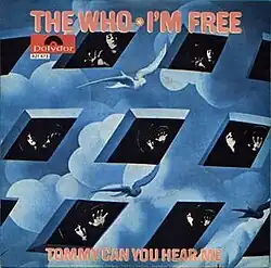"I'm Free" was later released as a single in most of Europe (backed with "Tommy, Can You Hear Me?") as well as America (where it was backed with "We're Not Gonna Take It"). The single reached number 37 in the US on the Billboard Hot 100.[6] It also reached number 20 in the Netherlands,[7] and number 26 in Canada.[8] Billboard described the single as an "easy beat rocker" with "much sales potency" that represented a "change of pace" from the Who's previous single "Pinball Wizard."[9] Cash Box said that "the Who come on strongly" and that the song has a "striking out-of-context lyric which should spark immediate activity."[10]
