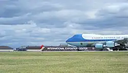 The International Exposition Center, better known as the I-X Center, is a convention and exhibition hall located in the Hopkins neighborhood of Cleveland, Ohio, United States,[3] adjacent to Cleveland Hopkins International Airport. The 2,200,000-square-foot (200,000 m2) building includes over 1,000,000 square feet (93,000 m2) of exhibition and conference space,[4] making it one of the largest meeting, convention, and exhibition centers in the United States. The diverse show schedule includes public events featuring one of the country's largest boat shows, trade shows, banquets and meetings attracting over 2 million visitors each year.